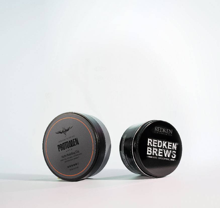 Матирующая глина для укладки волос с каолином Protomen Matte Modelling Clay, Protokeratin; матовая помада-глина для небрежной укладки волос Clay Pomade, Redken Brews