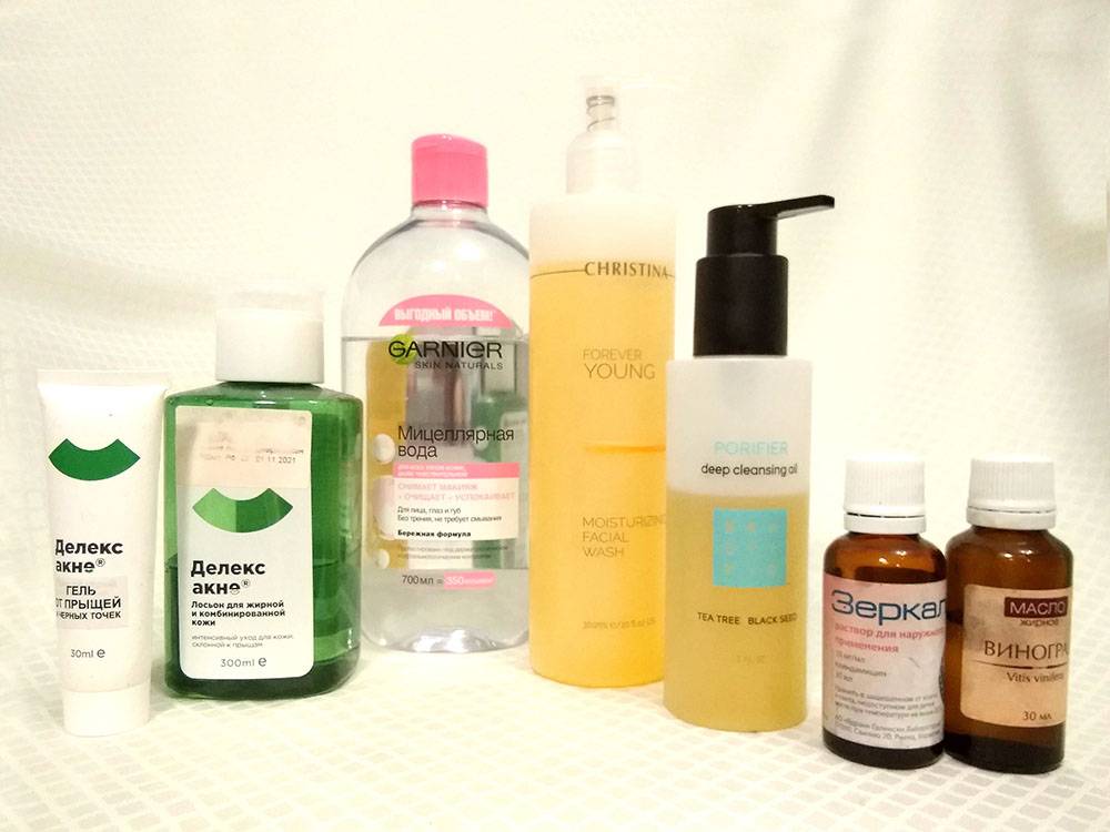 Вечером я снимаю макияж и умываюсь, потом восстанавливаю pH с помощью тоника. После этого, поскольку кожа все еще требует дополнительного ухода, использую себорегулирующий гель «Делекс-акне», а иногда – антибактериальный «Зеркалин» точечно на воспаления.