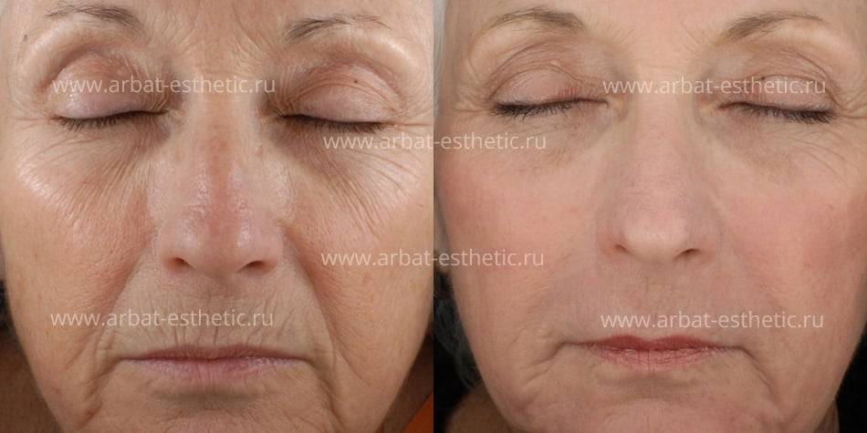 Сокращение кожи нижних век после фракционной лазерной шлифовки.