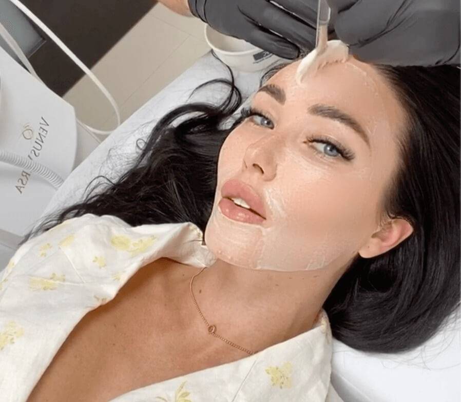 когда обработка лазером завершена, лицо очищается от смеси. На кожу наносят успокаивающую маску.