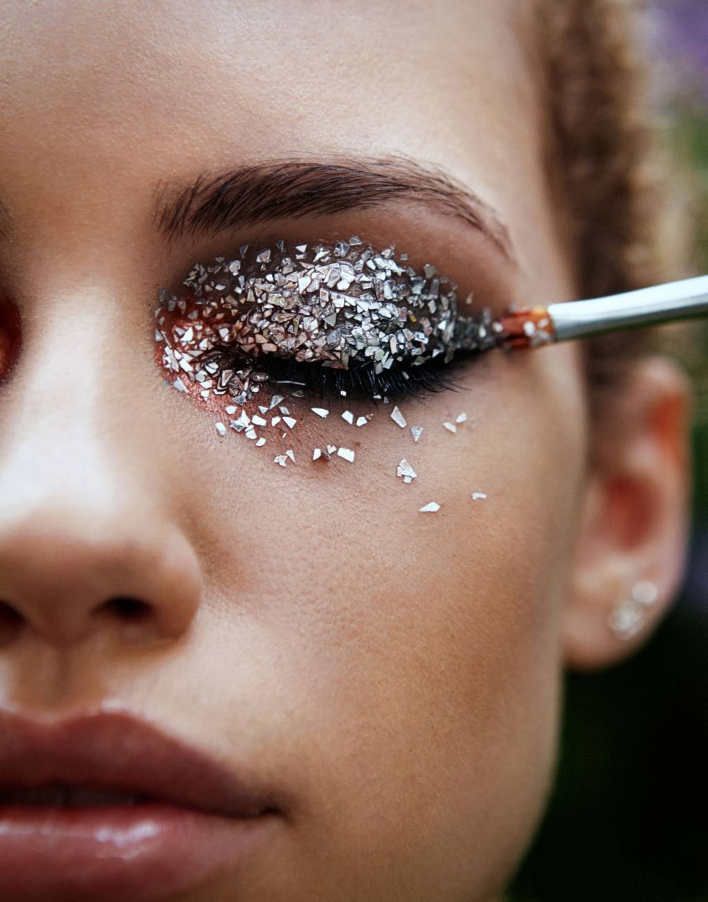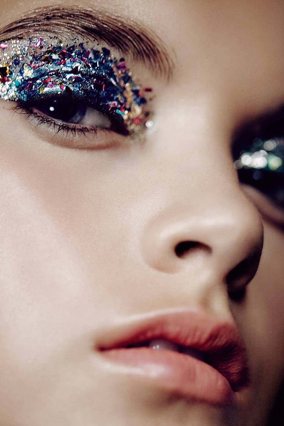 Металлизированные оттенки уже не первый сезон господствуют в нейл-арте, декоре одежды. Настала очередь макияжа. Стилисты предлагают выполнять мейкап с глиттером, создавая дерзкие и запоминающиеся образы для похода в клуб или вечеринки.