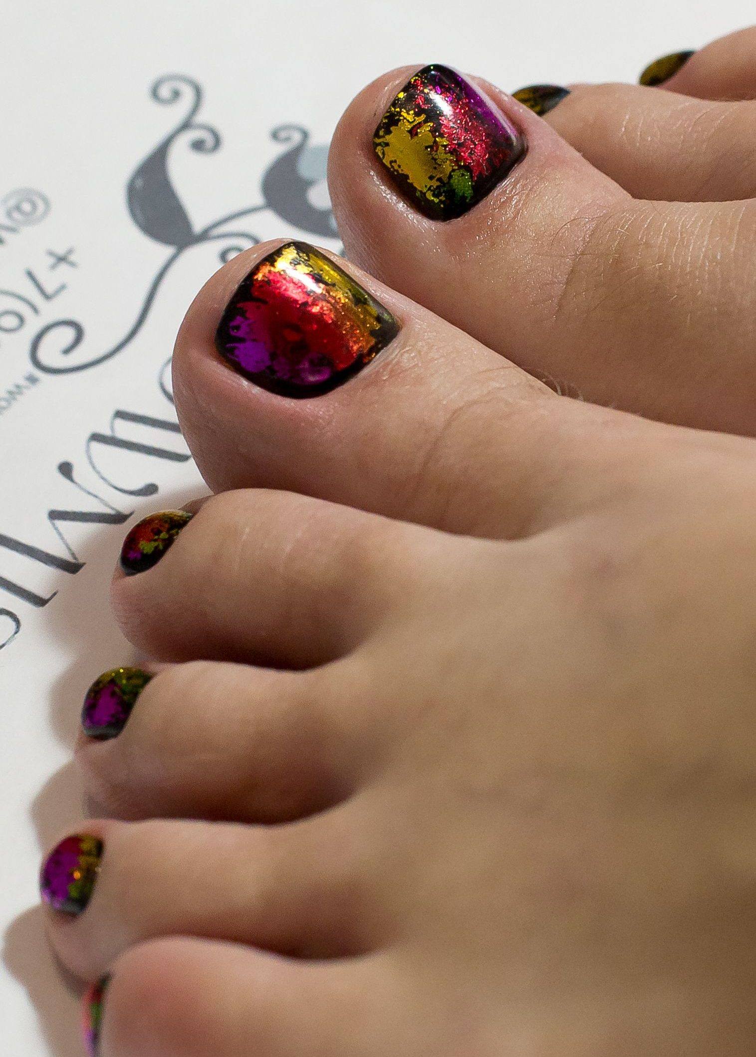 Создавая педикюр в разноцветной гамме, стоит уделить внимание данным новинкам:. Рисунки цветов на радужном фоне