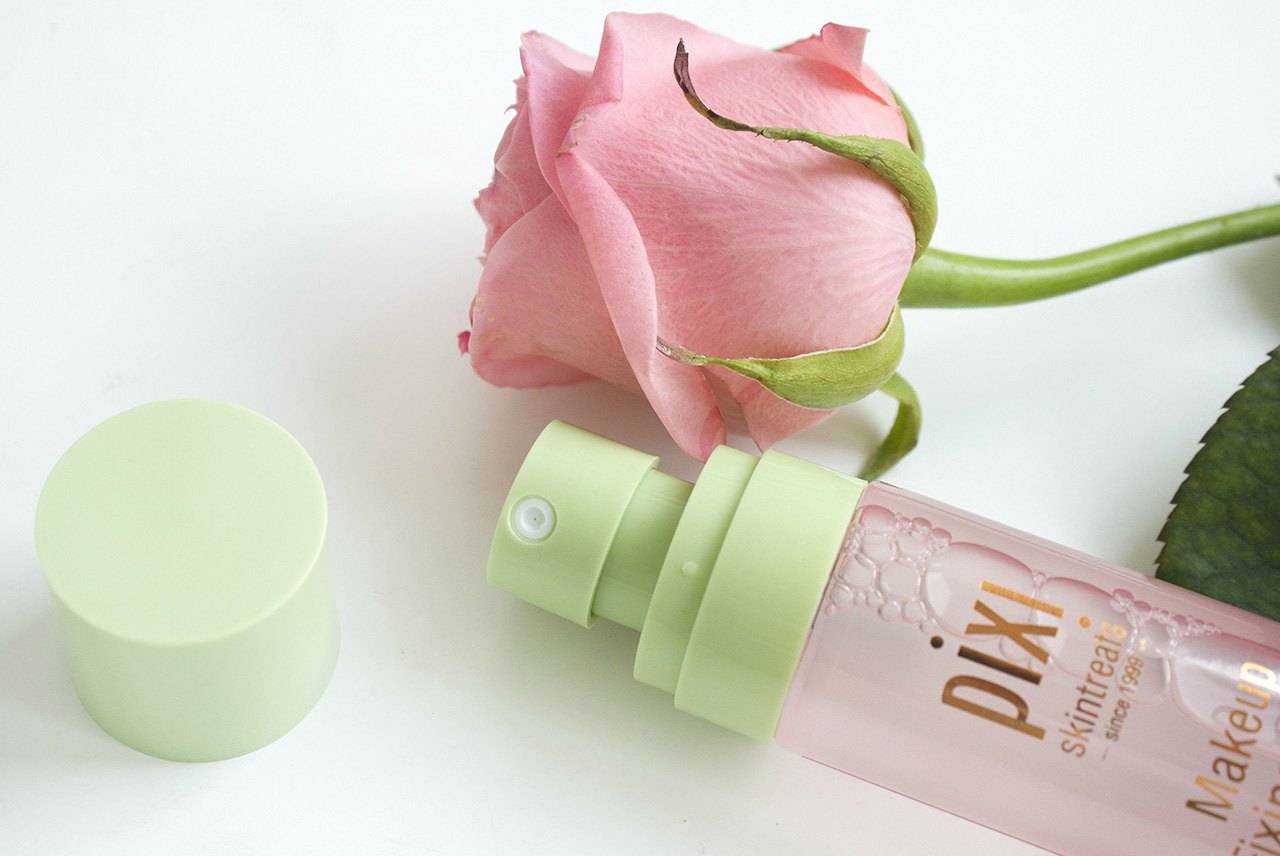 По текстуре спрей — это обычная водичка, а пахнет Pixi Make Up Fixing Mist розой. Но это не легкий аромат лепестков роз, а более тяжелый и насыщенный запах, поэтому я, как обычно, предпочла бы, чтобы средство вообще было без какой-либо отдушки. Но, думаю, здесь отдушка присутствует для того, чтобы перебить запах спирта, и он в средстве и правда не ощущается.