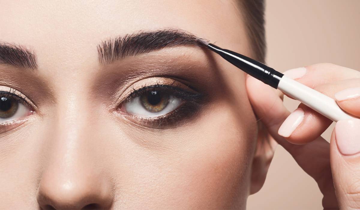 Необходимо выполнить прорисовку бровей. Для этого следует применить карандаш, цвет которого на несколько тонов светлее оттенка волос.