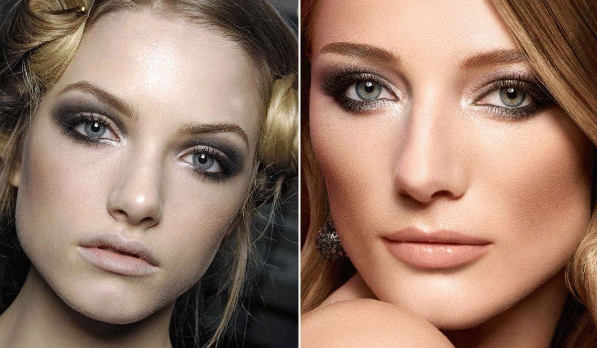 - Отправляясь на вечеринку, можно сделать макияж в стиле смокиайс, использование черных угольных теней допускается, однако, девушкам со светлым цветотипом визажисты рекомендуют ограничиться смокиайс в коричневых либо серых тонах.