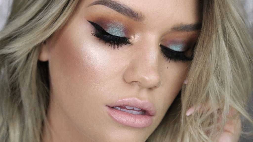 Если наблюдается нависание верхнего века, ей также подойдёт макияж в технике смоки-айз. Но оттенки для голубых глаз следует выбирать более тёплые и светлые: коричневые, насыщенные бежевые, медные
