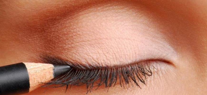 Если использовался черный карандаш, линию, расположенную под ресничками, проводят серым цветом. Довольно часто расположенные около переносицы уголки покрывают серебристым или белым лайнером. Тогда зрительно увеличится расстояние между уголками. Для лучшего эффекта можно нанести светлую обводку прямо над ресницами. Таким образом, нарисованная полоса будет сливаться с белками, зрительно расширяя их.