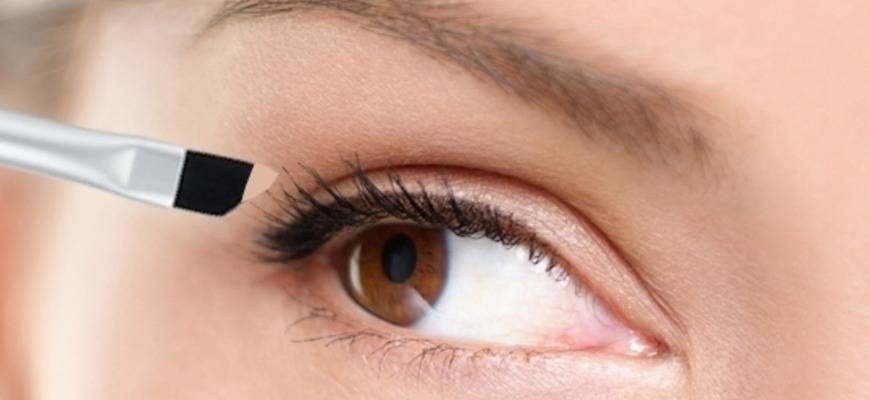 - Нанести под брови базу на тон светлее естественного цвета кожи.