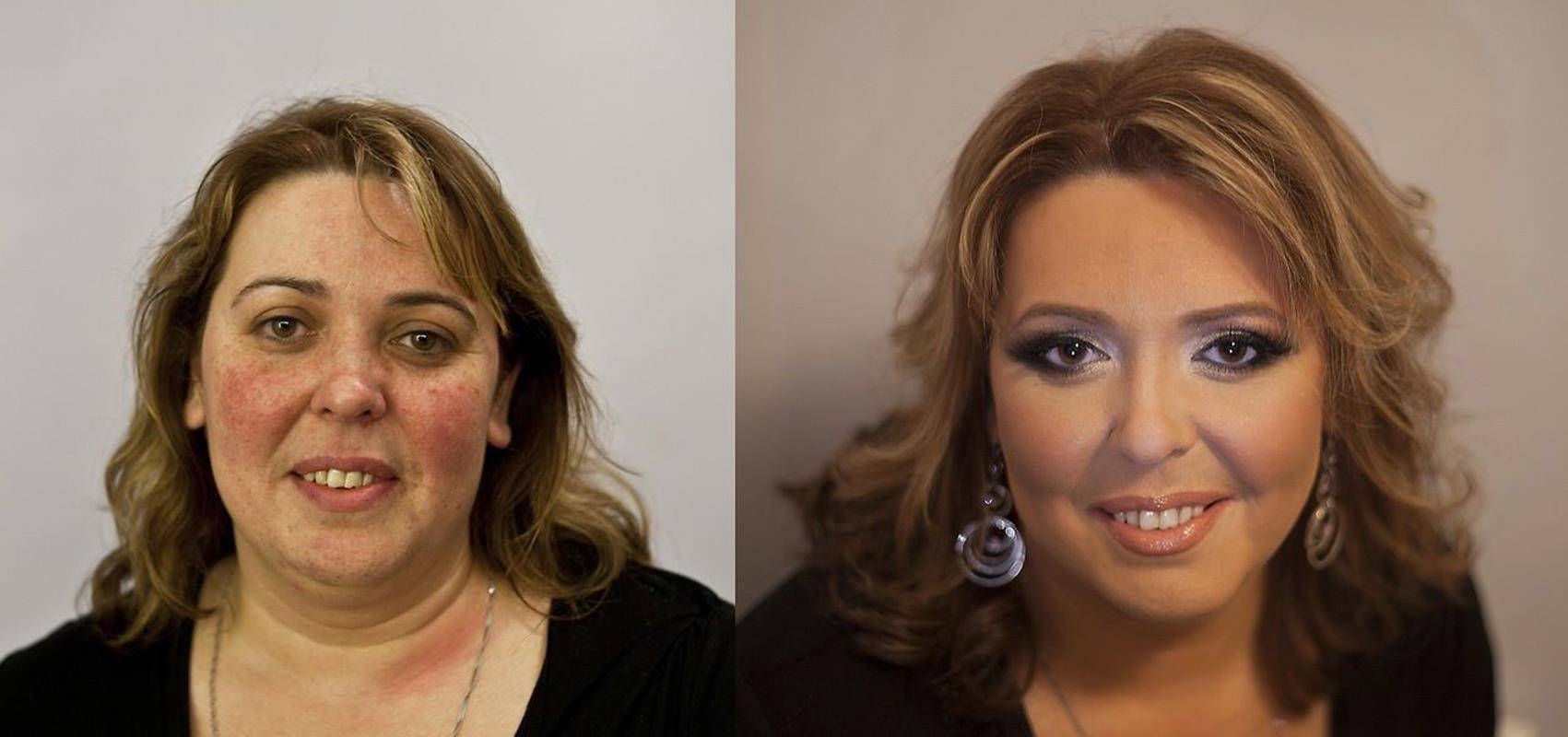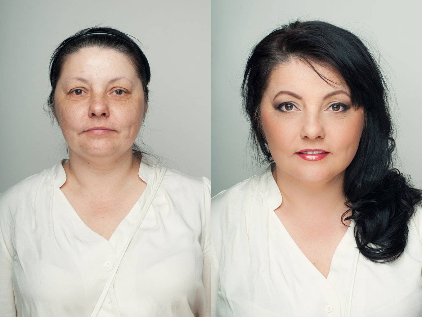 Скудный выбор косметики очень ограничивал макияж женщины.