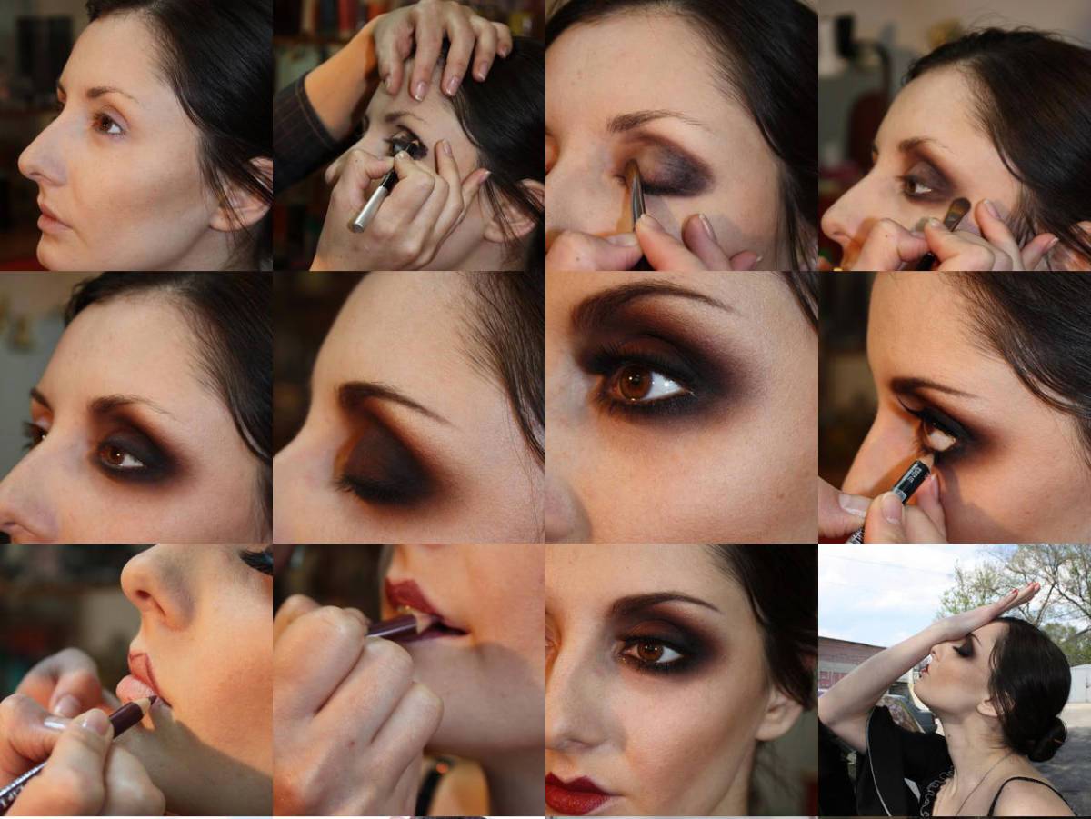 Неподражаемая Софи Лорен в свое время свела с ума не один десяток мужчин. И в ее образе большую роль играл макияж. Как вы помните, Лорен – брюнетка, поэтому если у вас тоже черные волосы, сделаем своими руками макияж в стиле 60-х. Для удобства тоже прилагаем пошаговую схему.
