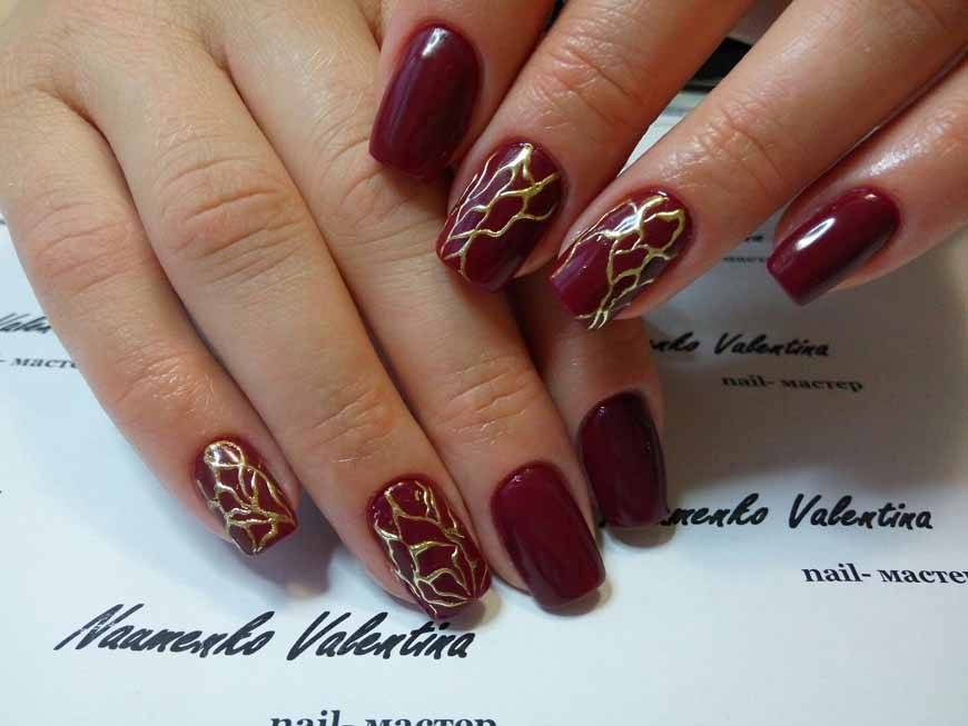 Маникюр цвета марсала с золотом фото