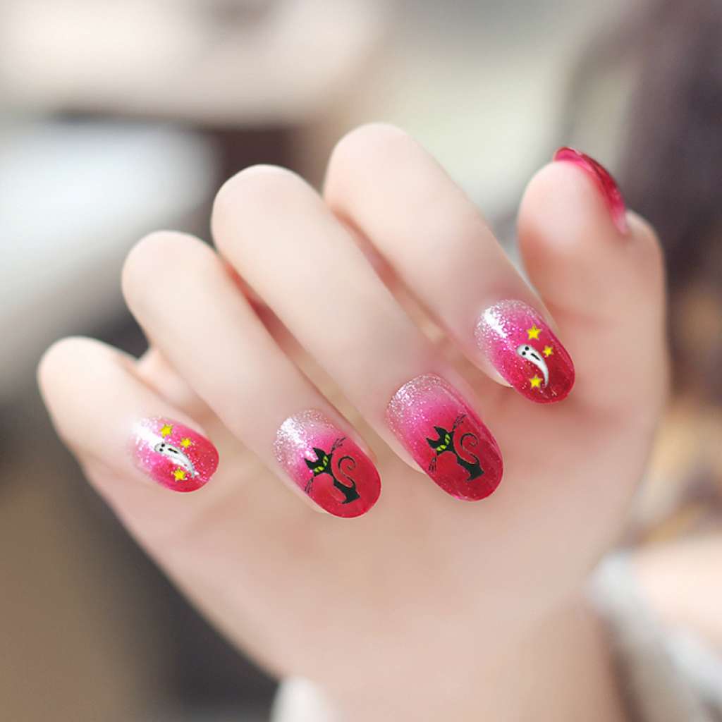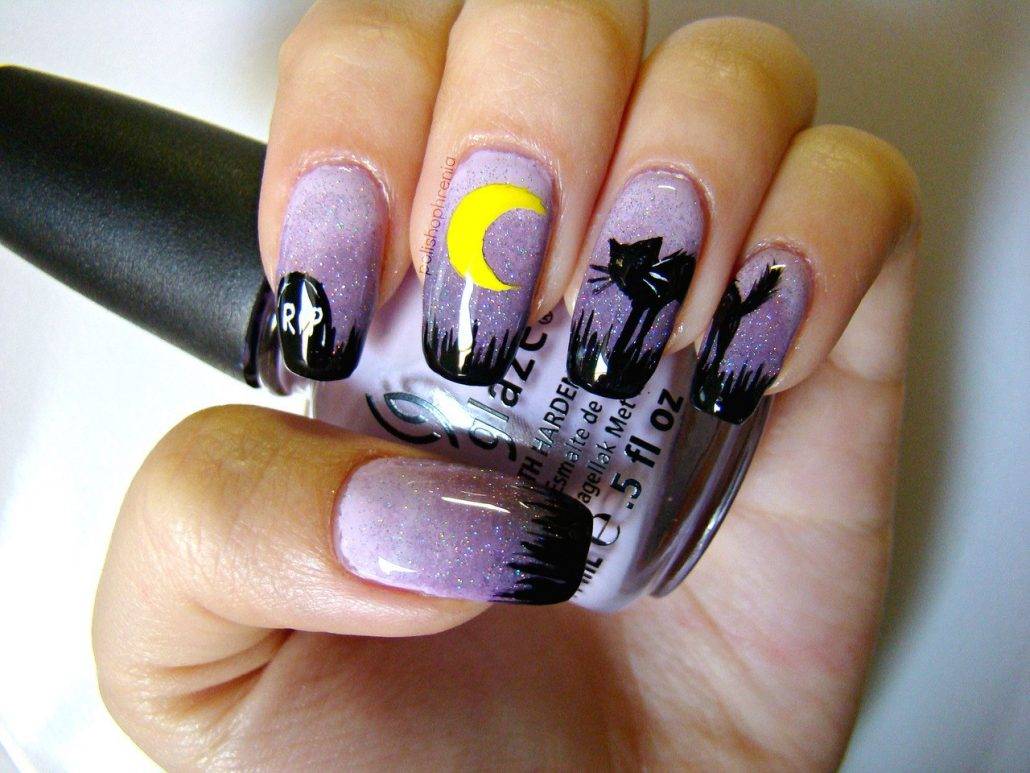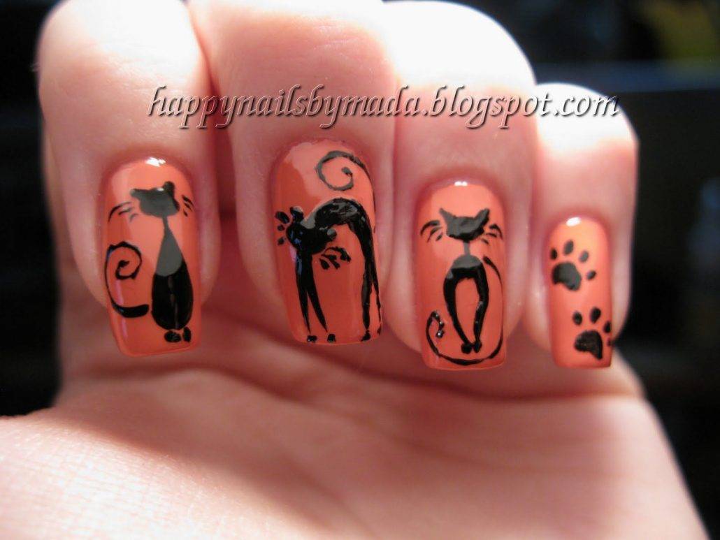 Поэтому не удивительно, что это милое животное тоже стало символом праздника. Но, как бы там ни было, кошки получаются больше милым и забавным, нежели ужасающим и пугающим. Поэтому девушки их часто выбирают для украшения своего праздничного маникюра наравне с тыквами.
