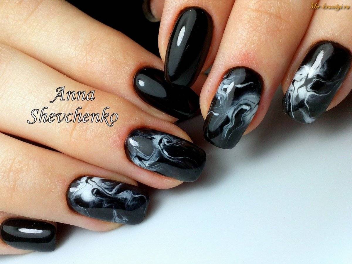 Кстати, имитация мраморного покрытия на длинных ногтях прекрасно сочетается с золотой или серебряной поталью.
