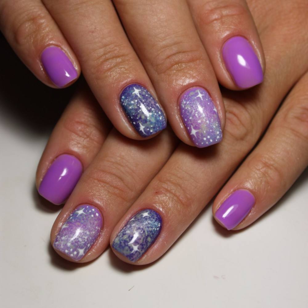 Изысканный дизайн получается на основе градиентного маникюра или омбре. Игра цвета делает маникюр более интересным, а правильно размещенные дополняющие элементы (рисунки, узоры, декоративные украшения и пр.).