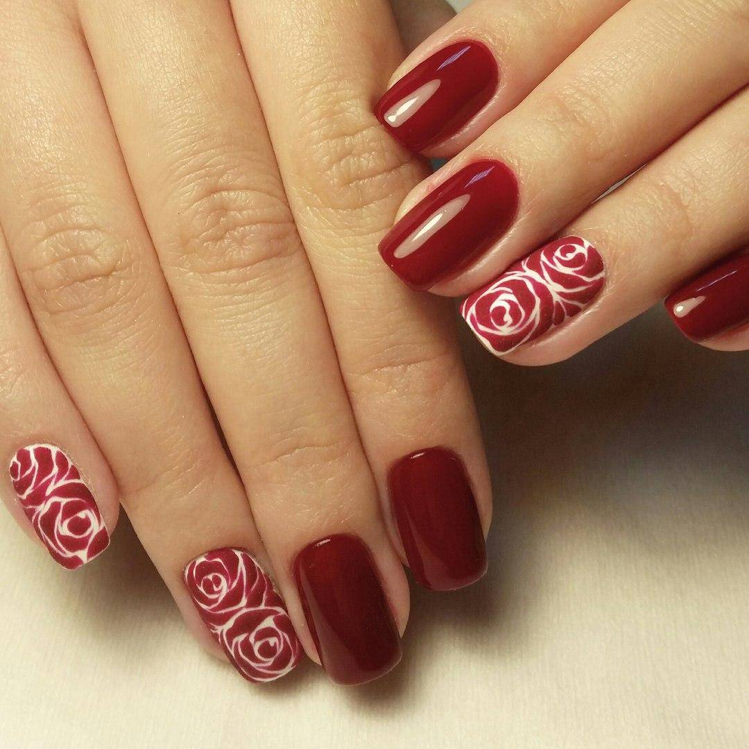 День влюбленных отмечается широко и красиво. Поэтому отразился праздник и в маникюре. Преобладающие цвета – красный, розовый, малиновый и все соседние оттенки.