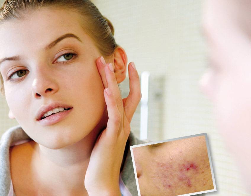 Наличие угревой сыпи требует постоянного очищения кожи. Для этой цели подходит маска на основе масляных растворов плодов симмондсии и виноградных косточек (по три капли). Состав обогащают ламинарией (20 г). Средство наносят на лицо и смывают теплой водой через 45 минут.