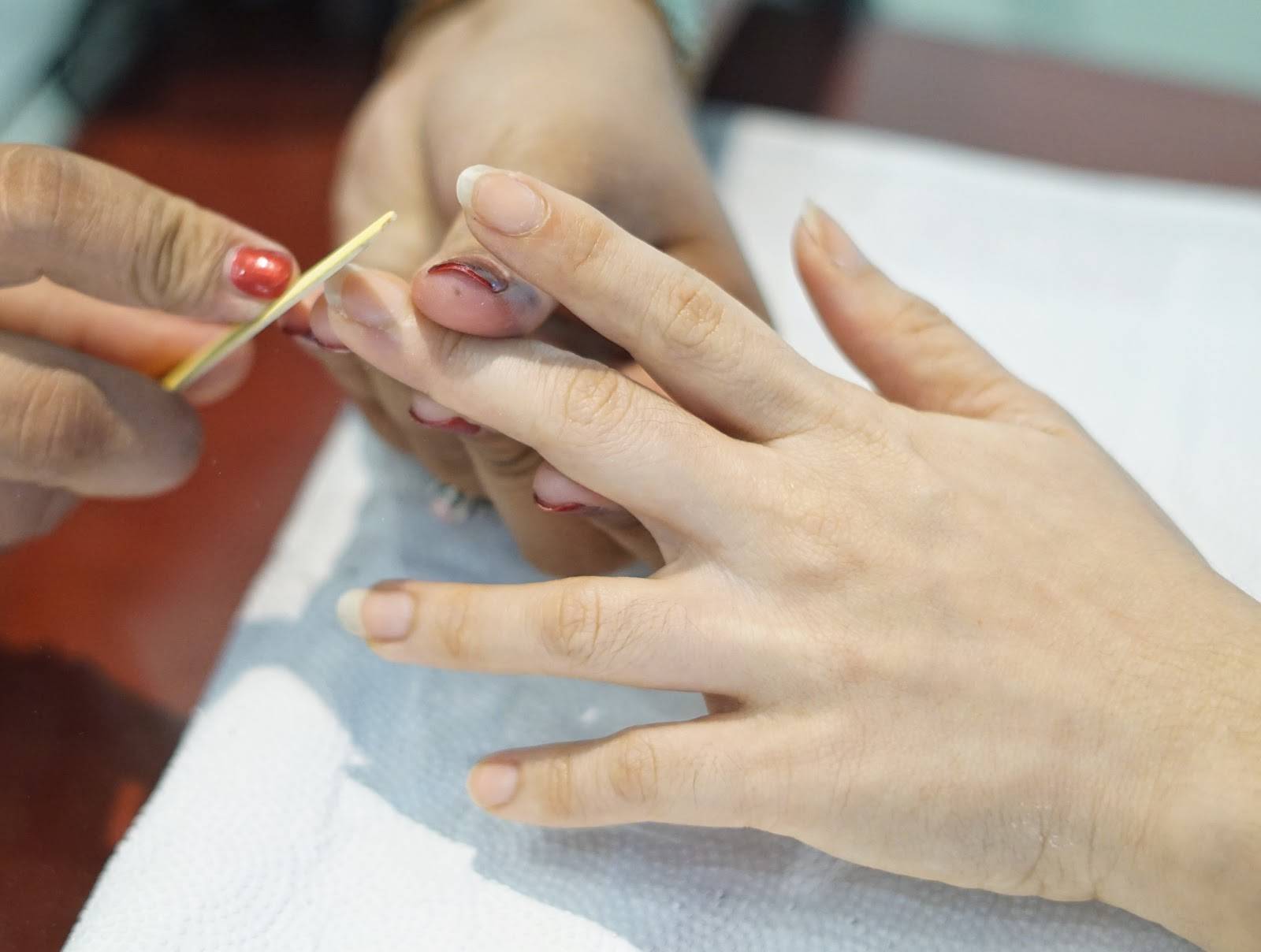 Выполняется маникюр, чтобы снять кутикулу и убрать птеригий;