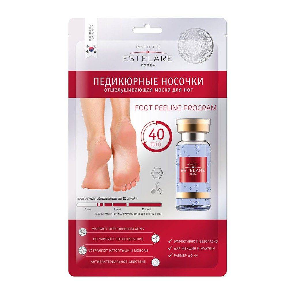 Маска-носки для ног от корейского производителя. В состав входят гликолевая и цитрусовые кислоты, экстракт ромашки. Эффект наступает через 7–14 дней и сохраняется 2–3 месяца. Средняя стоимость — 300 р.