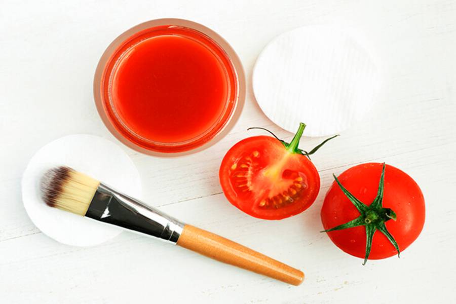 Сок и мякоть свежих помидоров смягчают дерму и выравнивают ее цвет. Мякоть 1 большого томата наносят на лицо и оставляют на 10 минут. Этого достаточно, чтобы кожа стала сияющей, увлажненной и свежей.