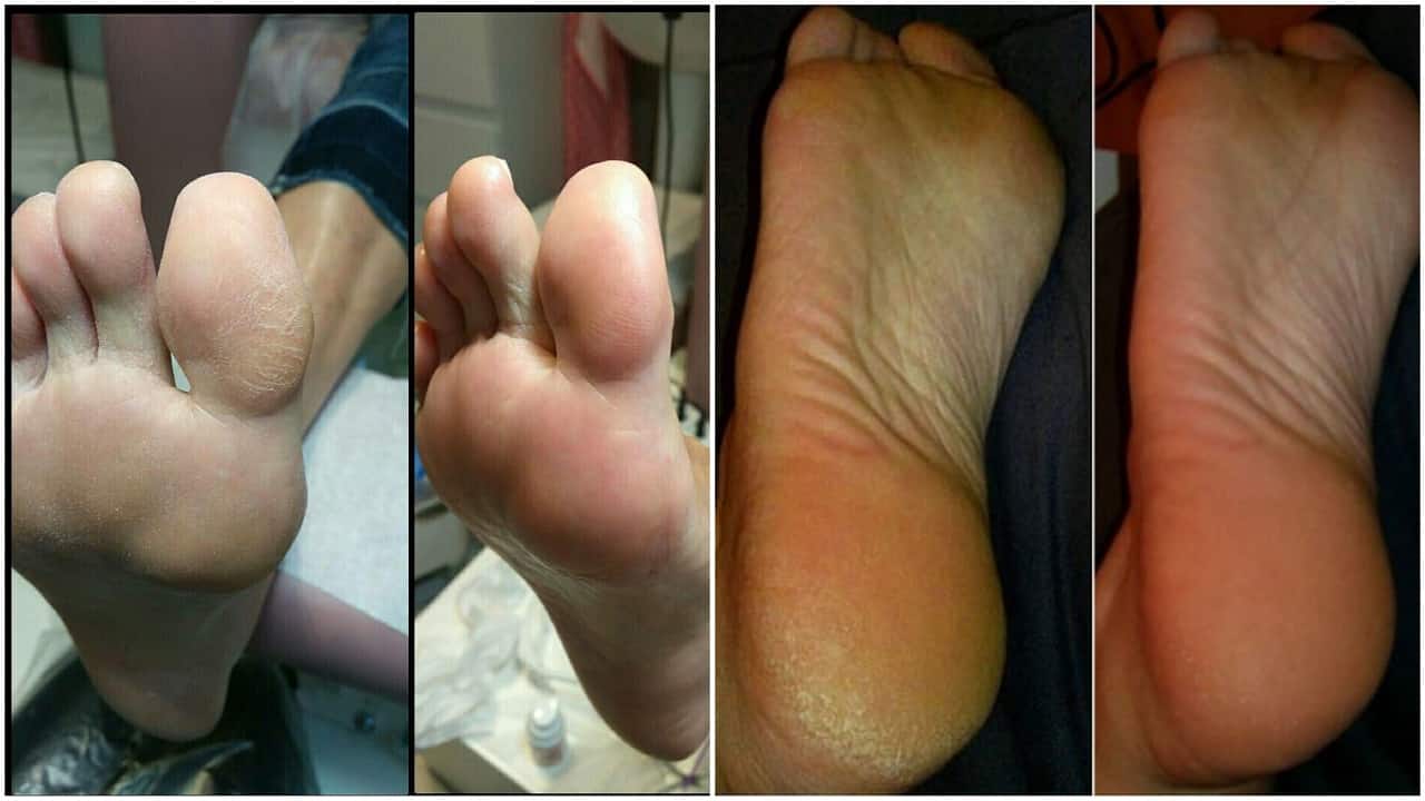 - С помощью средства для очистки удалите загрязнения со стоп и обезжирьте их.