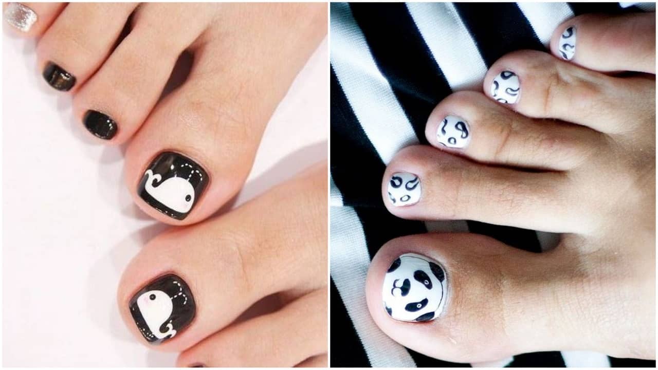 Черно-белый педикюр с термопленками
