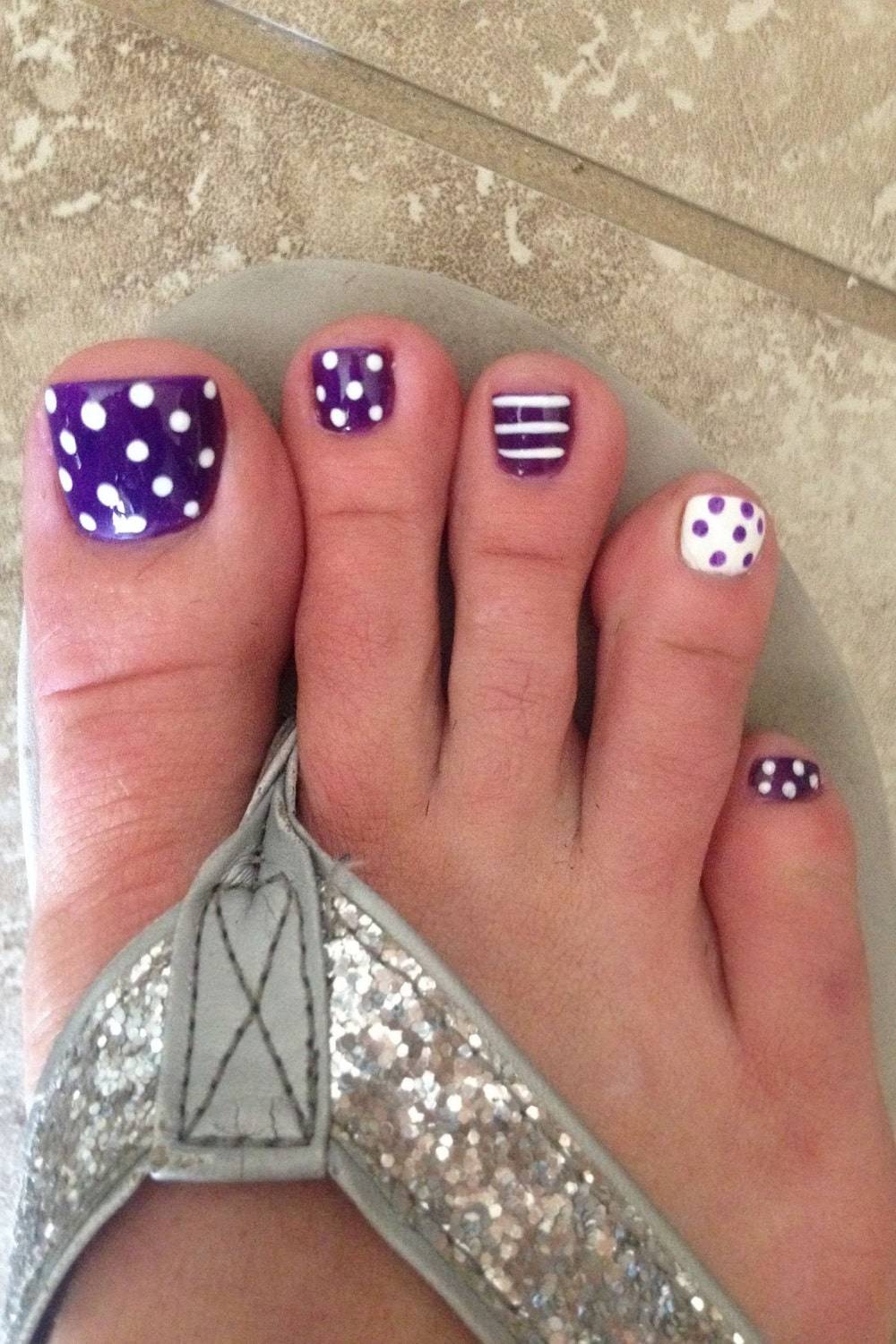 С помощью таинственного и многогранного фиолетового цвета можно создать оригинальный красивый педикюр, который будет смелым дополнением к любому гардеробу и стилю. Такой дизайн идеально подойдет девушкам, которые устали от классических вариантов оформления и хотят добавить в свой образ частицу неукротимой энергии.
