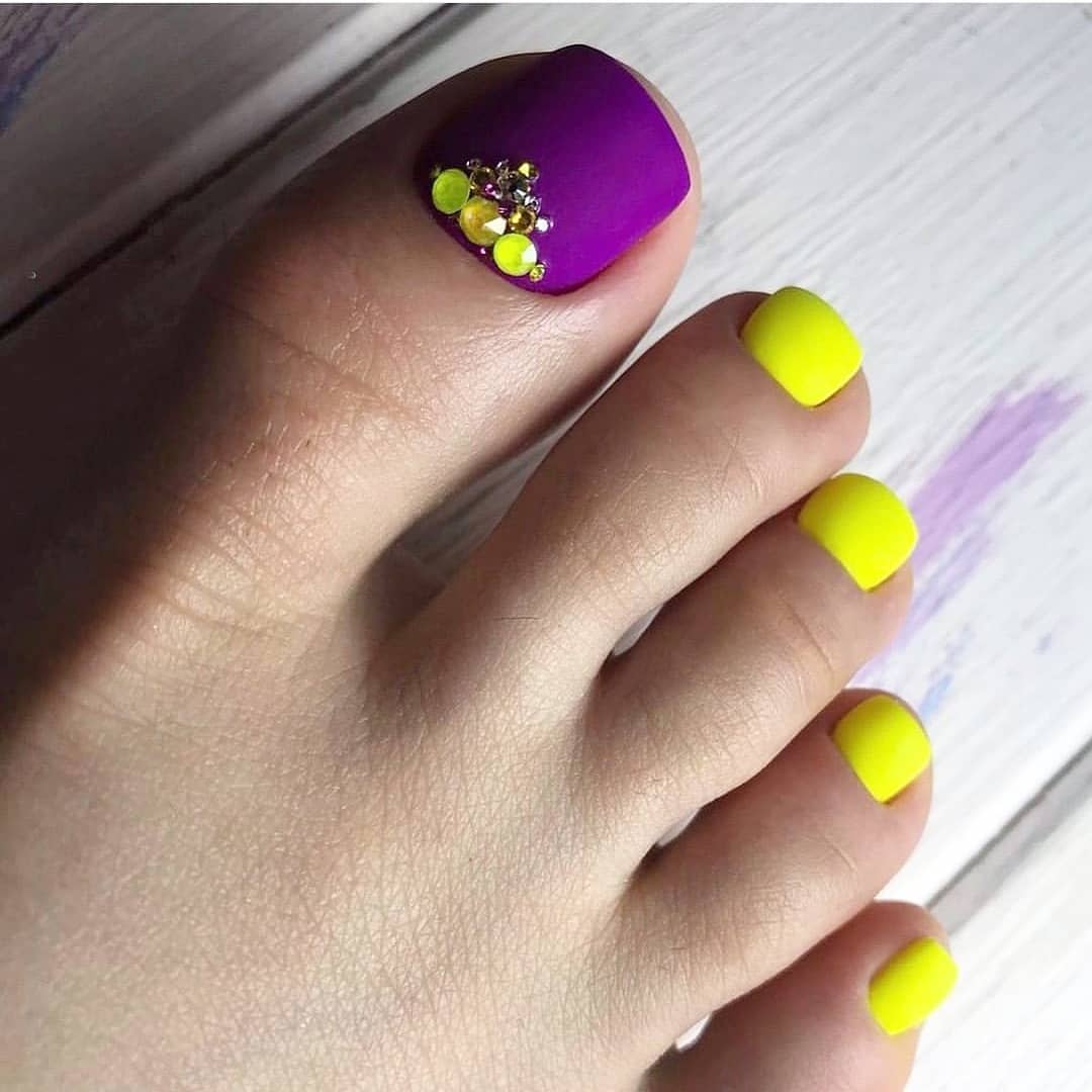 Однотонный педикюр можно воплощать в блистательном глянце или в бархатном матовом исполнении. Стразы рекомендуют наносить на большой палец, а если камешки очень маленькие, их можно расположить по одному на каждый ноготок. Стразы можно выложить в хаотичном порядке или в виде определенной фигуры. Самым главным в выборе дизайна для педикюра будет подборка актуального цвета лака. Какой бы вариант Вы не выбрали, прислушайтесь к советам опытного мастера.