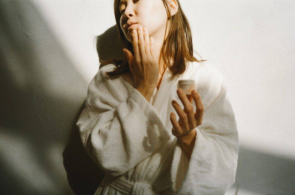 На чистые ладони нанесите небольшое количество крема, слегка разотрите в них средство и легкими массажными движениями перенесите его на лицо
