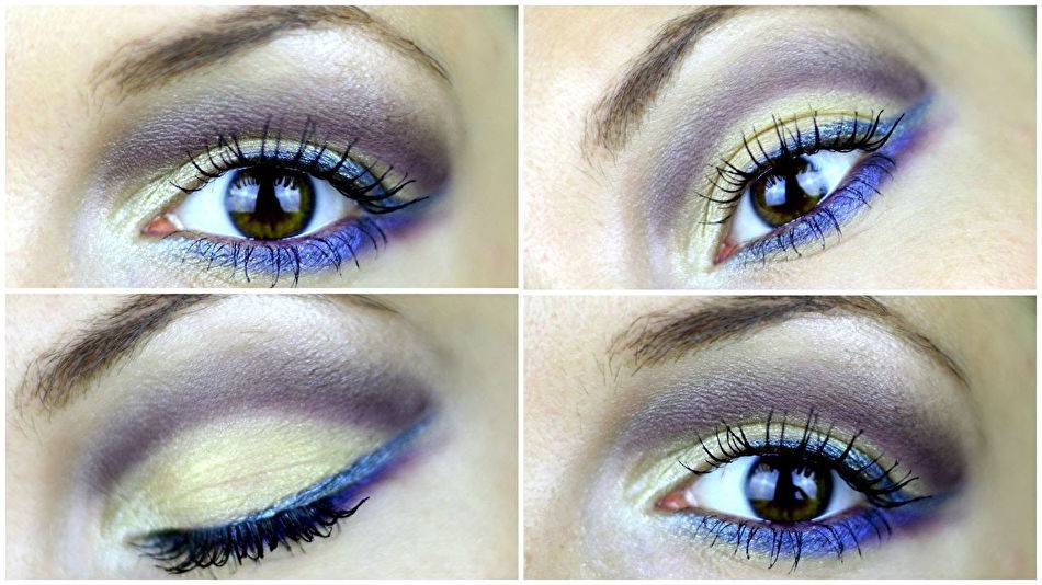 Начинаем мы как обычно, с проработки тона лица, осуществления коррекции и хайлайтинга, оформления бровей. После того, как мы осуществили все эти шаги, приступаем к макияжу глаз. Оттенки теней и их текстуры выбирайте на свое усмотрение, также вы можете самостоятельно регулировать контрастность и яркость макияжа. Основными оттенками могут быть как коричневый и бежевый, так и красный с ярким синим.
