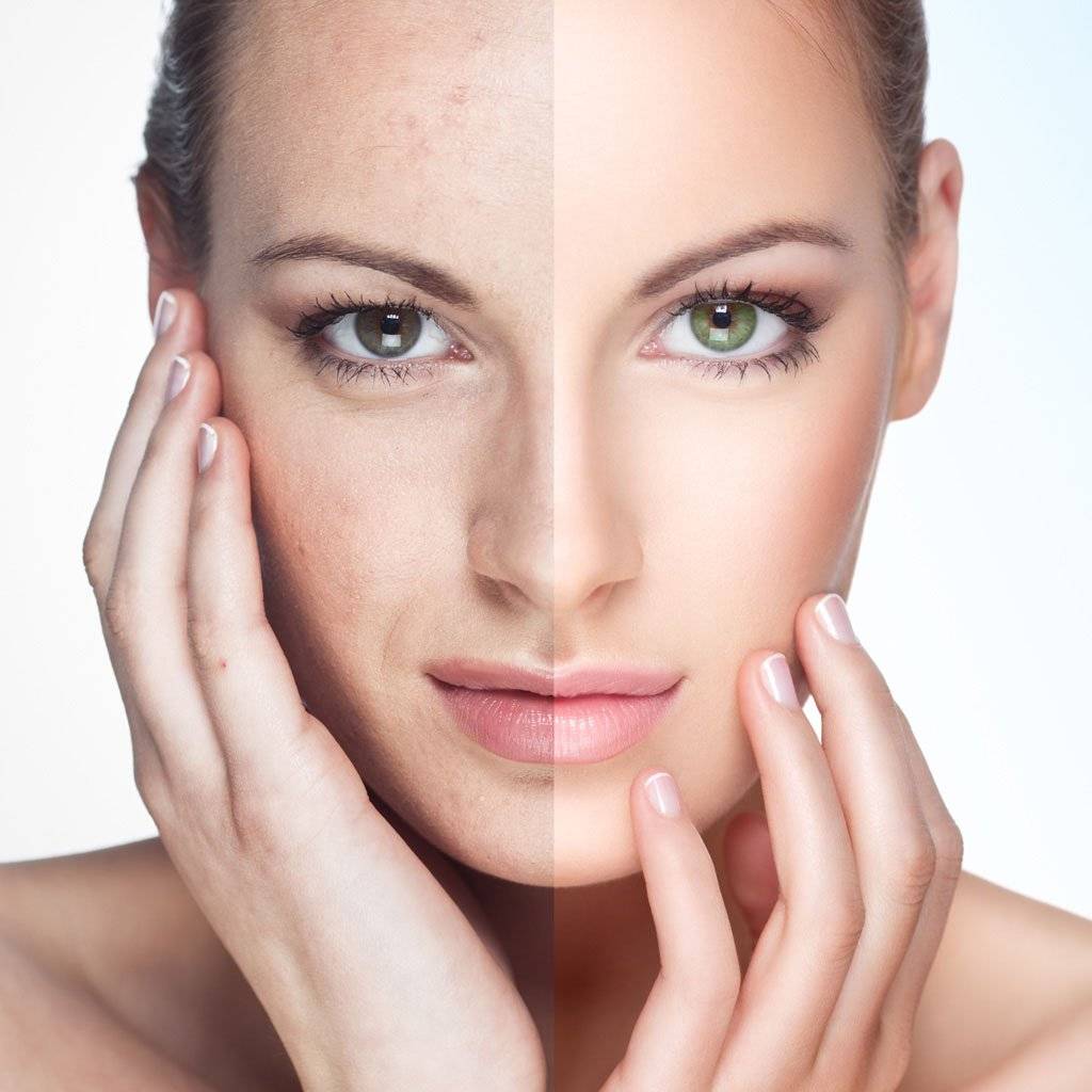 - Зеленый – коррекция красного оттенка: сосудов, прыщей, царапин.