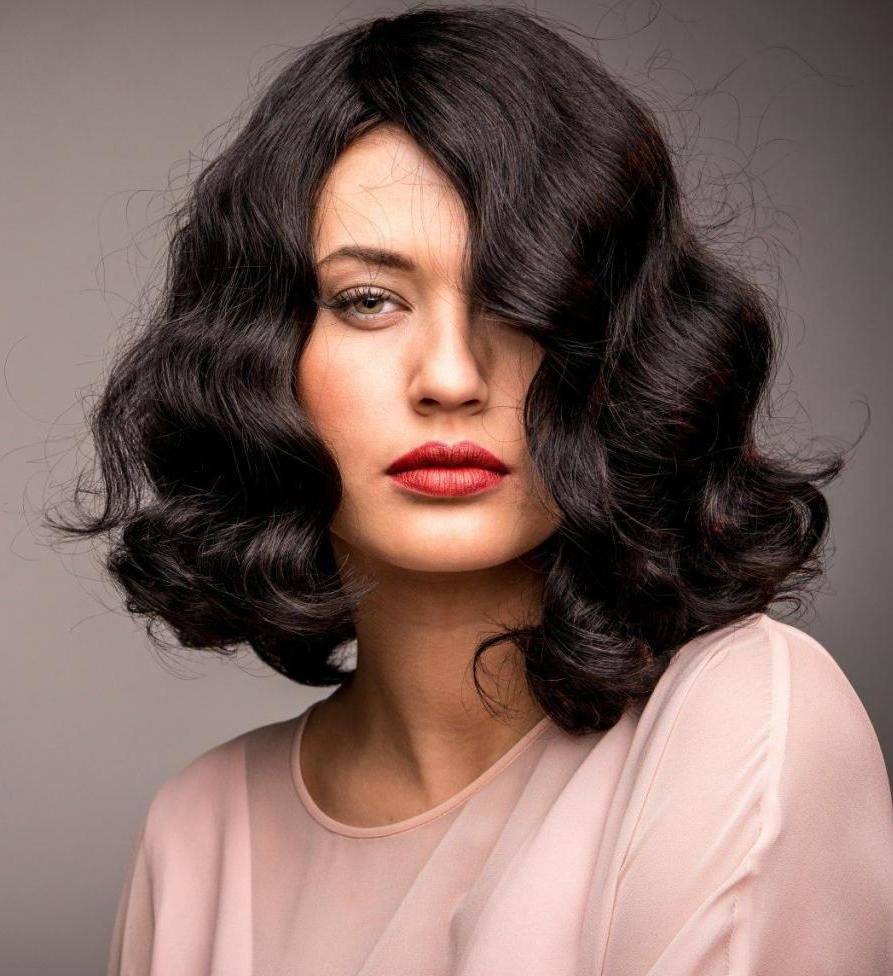 Челку в этой прическе можно выразить в стиле 60-х по технике «волна». Существует горячий и холодный метод создания элемента. Волосы выкладываются с помощью расчески и фиксируются гелем или лаком. Волна подходит для любой густоты волос. Если имеем дело с тонкими и редкими волосами, перед укладыванием челки прядь можно подготовить, завив ее с помощью плойки или утюга.