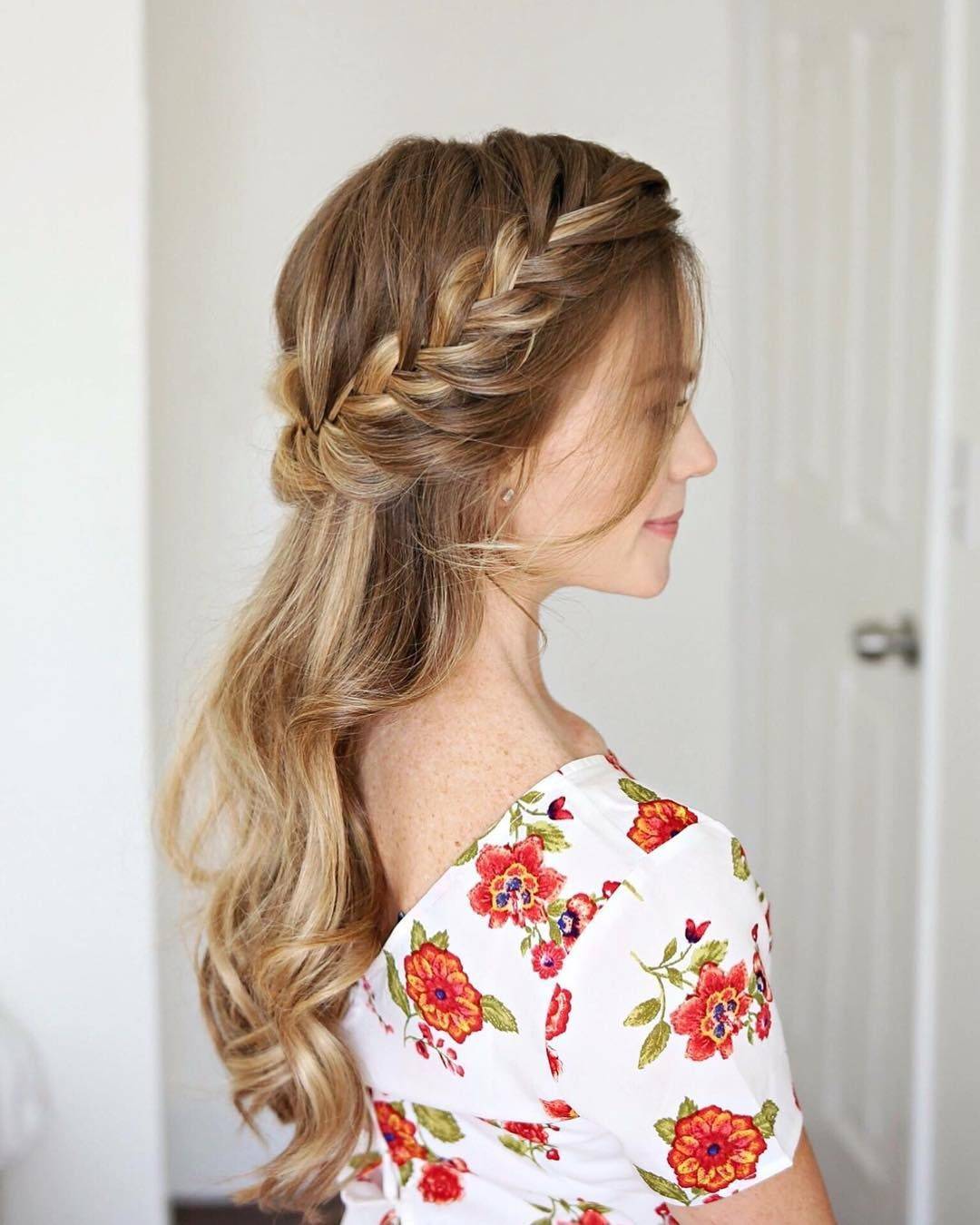 Легкие, небрежные локоны – это именно то, что считается наиболее актуальным в этом году. А если дополнить их красивым плетением, то прическа будет выглядеть очень романтичной и даже торжественной. Именно поэтому многие девушки предпочитают такой вариант для посещения самых разных праздников.