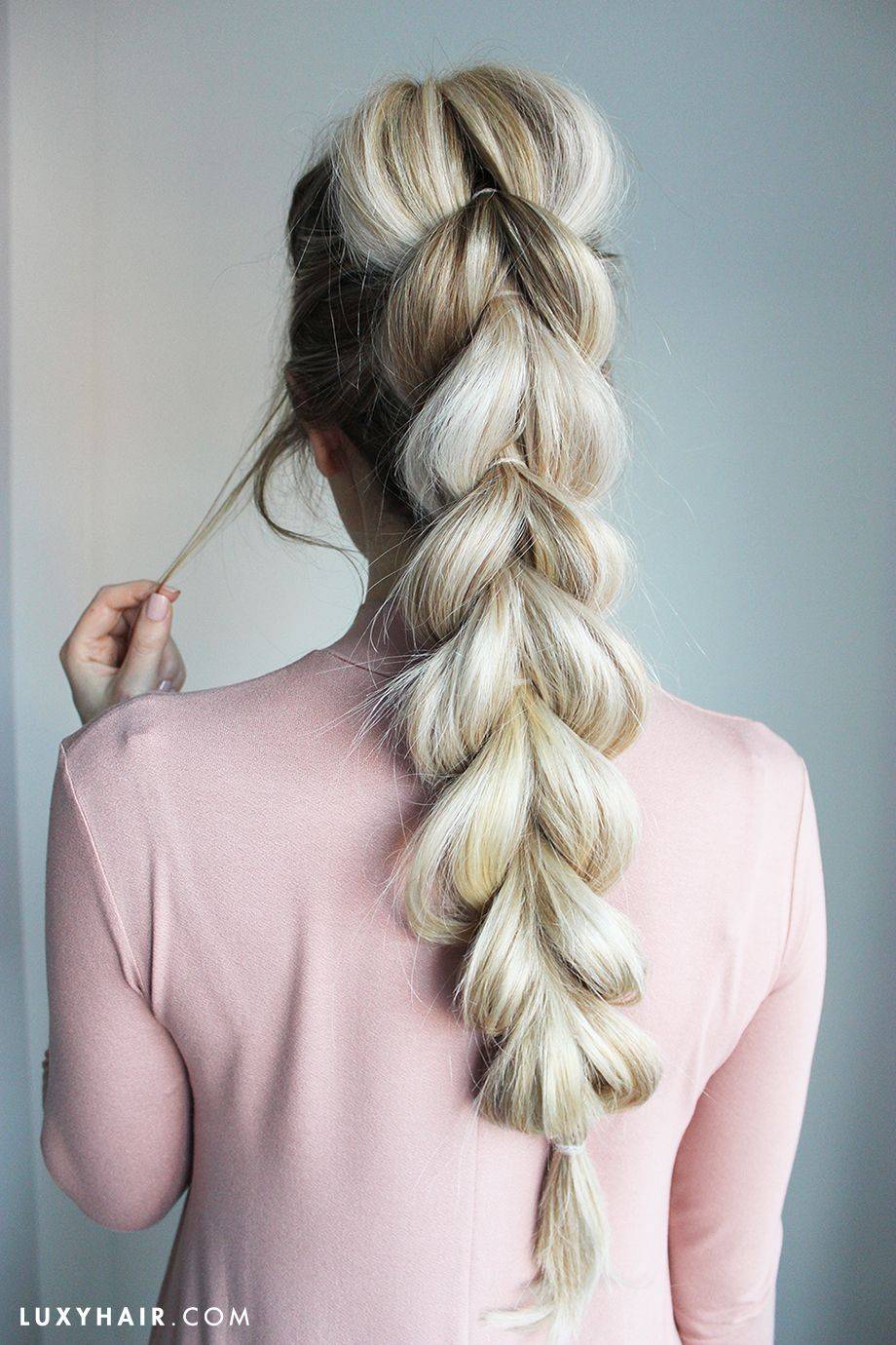 - Захватываем пальцами хвост и протягиваем в пробор между волосами.