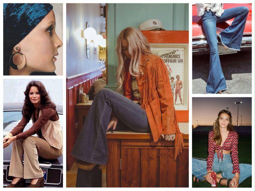 Основной тенденцией моды 70-х годов стала разноплановость, когда популярными были противоположные направления: хиппи, бохо, этно, диско, классика, унисекс, панк. Модницам предложили самостоятельно комбинировать брюки-клеш, жилеты, пиджаки, батники, брюки, береты.