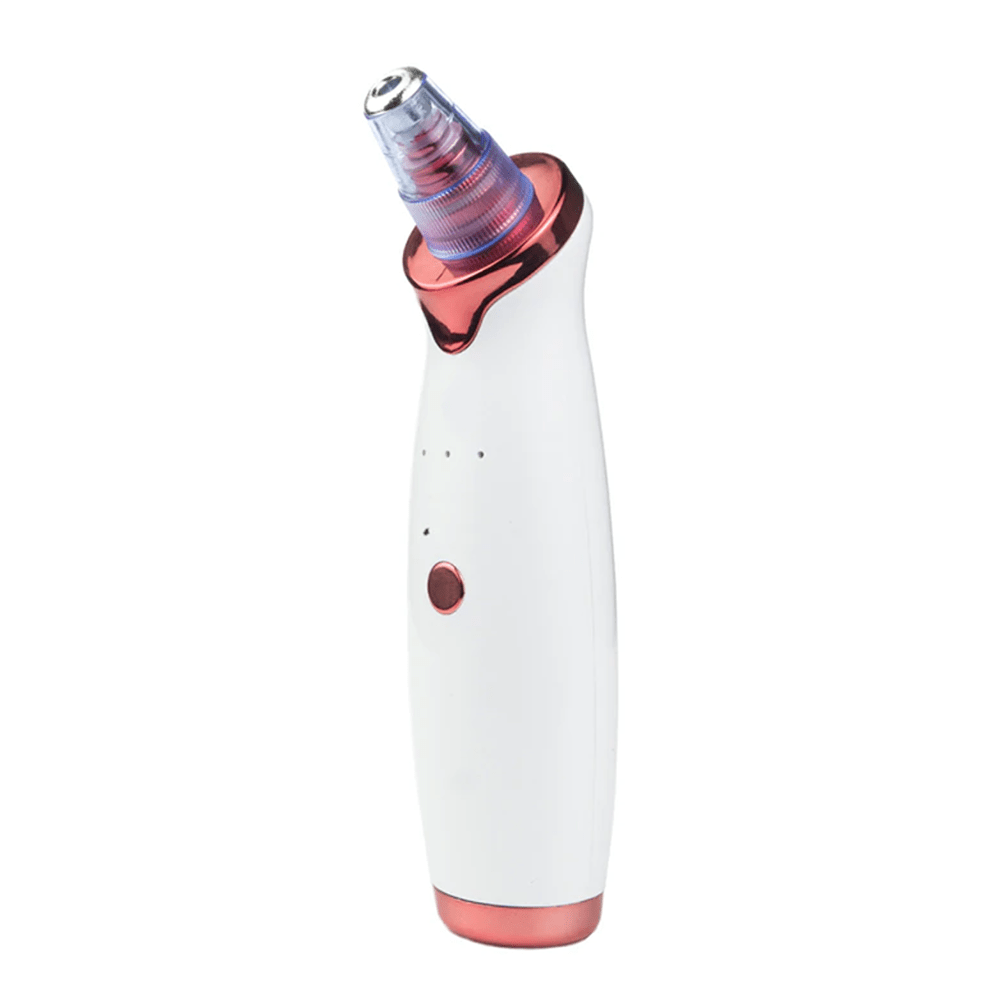 Способ воздействия – всасывание, пользователю предложены 3 уровня интенсивности со световой индикацией. Максимальный показатель мощности 3 Вт. В комплектации предусмотрено 5 насадок различного диаметра для работы с разными зонами лица. Корпус выполнен из ABS-пластика, на нем располагается кнопка управления.