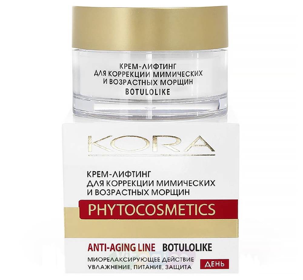 Крем для лица от морщин от 40 лет российского производителя Kora обещает вернуть молодость и упругость кожи за 2-4 месяца ежедневного применения. Он разглаживает до 35% мимических и возрастных морщин, выравнивает цвет лица.