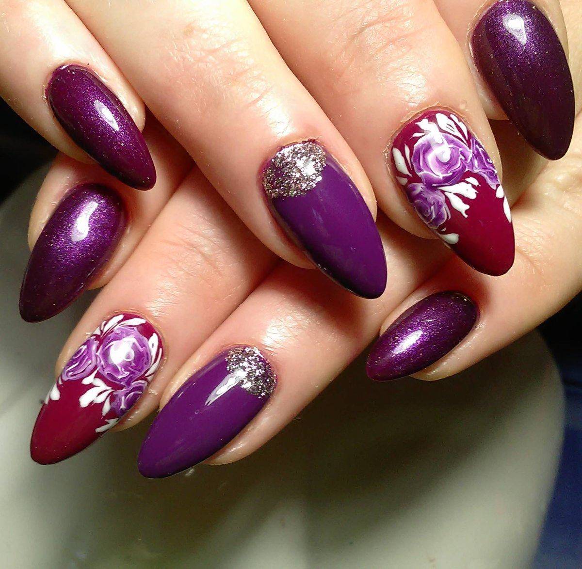 Длинные ногти и фиолетовый маникюр — нескончаемое поле для экспериментов нейл-арта, поэтому не бойся пробовать рисунки, стразы и разные техники оформления.