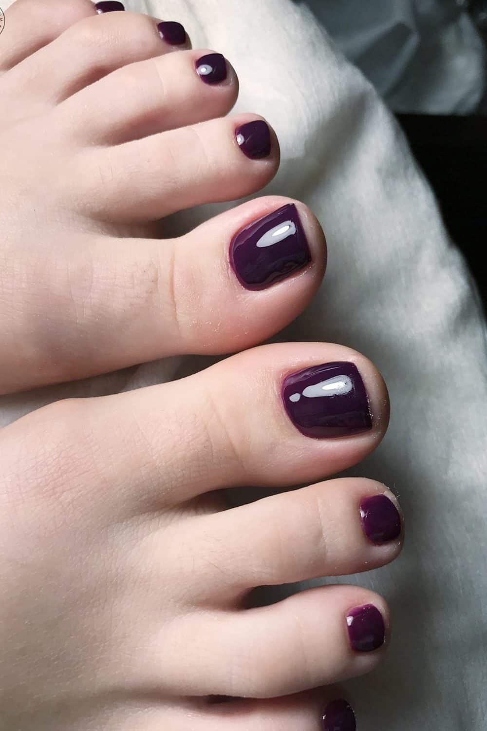 Важно сочетать такой педикюр с фиолетовым маникюром того же тона, чтобы весь образ смотрелся более гармонично