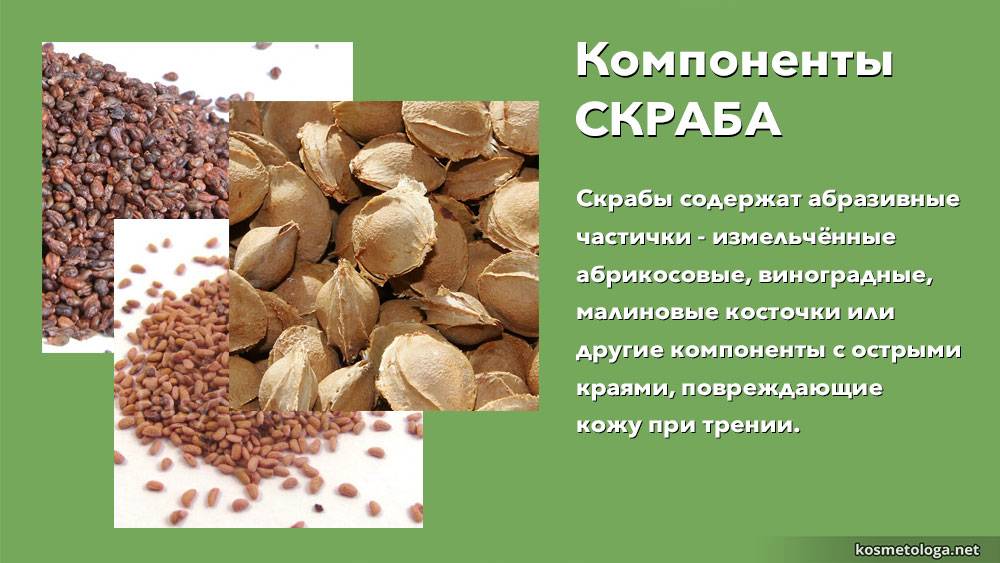 Дело в том, что скрабы содержат абразивные частички – измельченные абрикосовые, виноградные, малиновые косточки или другие твердые вещества. Именно с помощью механического трения они и удаляют загрязнения с поверхности кожи.