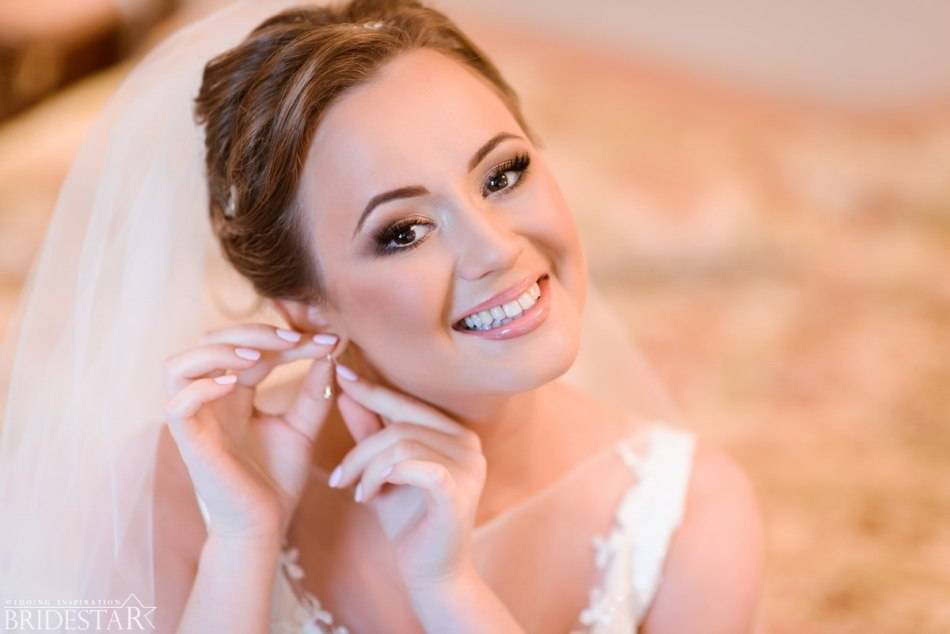 Облик невест-шатенок никогда не будет невзрачным. Правильный макияж тонко подчеркнет красоту и изысканность образа. Шатенкам рекомендуется подбирать тональную основу близкую к тёплому кремовому цвету.