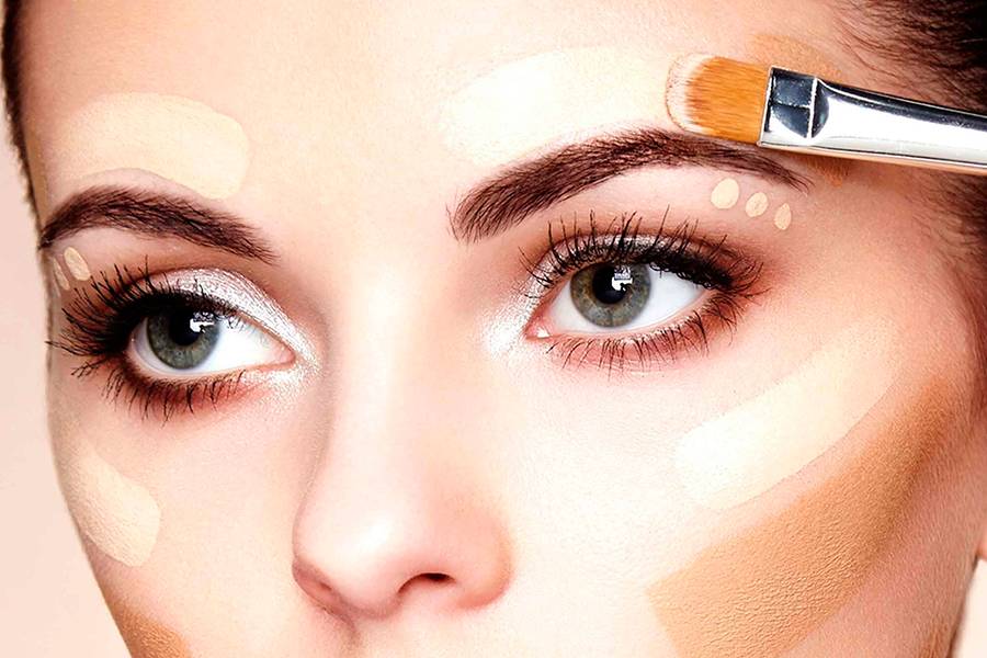 хайлайтер — спонжем или кистью его наносят на все участки лица, особое внимание уделяют щекам, подбородку и лбу;