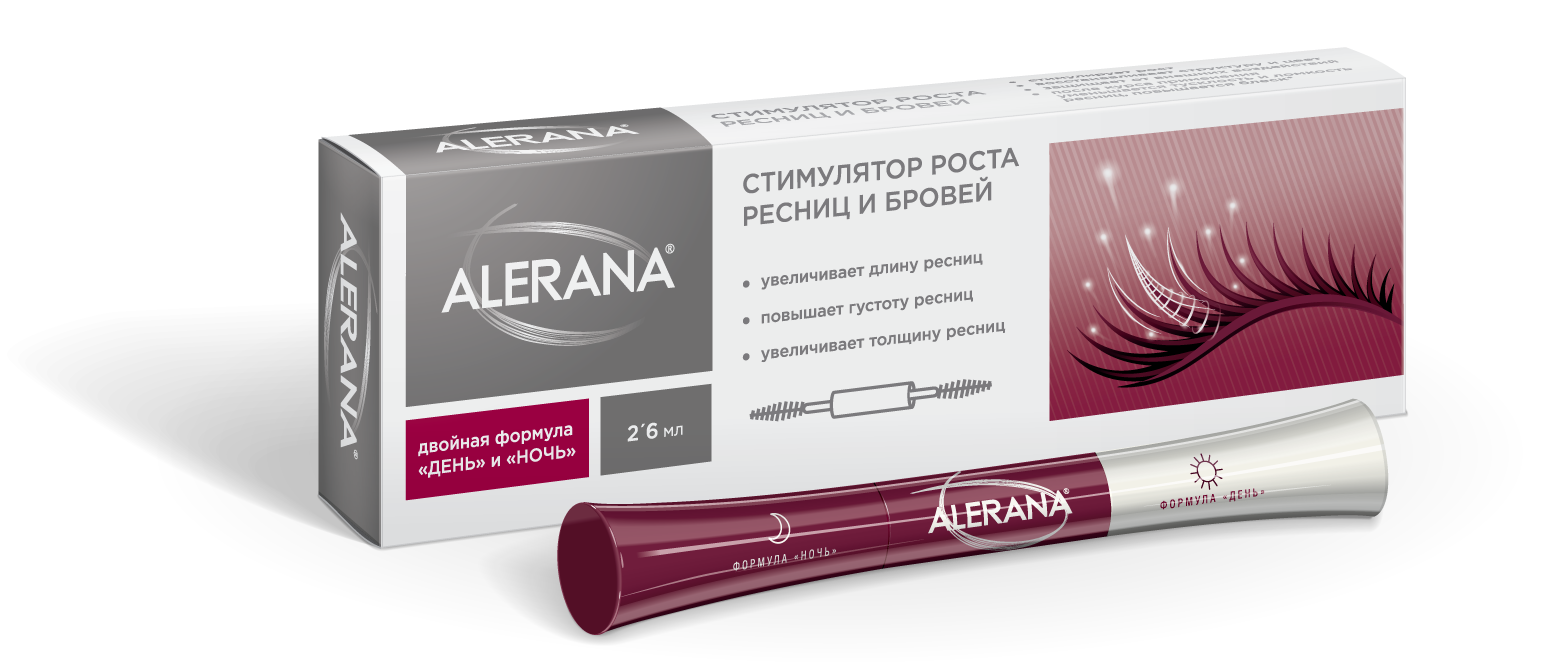 Стимулятор роста Alerana, производитель фармацевтическая компания Вертекс, Россия. В футляре 2 стороны – для дневного и ночного применения. Дневной состав более легкий – пантенол, экстракты каштана, элеутерококка и крапивы, таурин. Ночной включает комплекс масел и витаминов. Цена – около 550 руб.