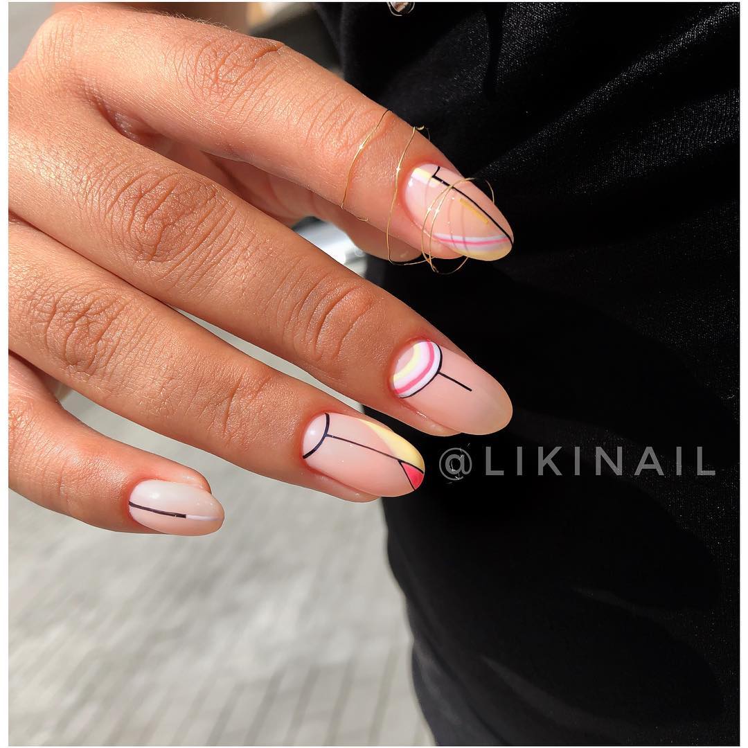 Заключающей техникой грядущего сезона можно назвать геометрию и абстракцию. Четкие линии, модные геометрические узоры и яркие цвета – оформленные таким способом ногти точно не останутся без внимания.