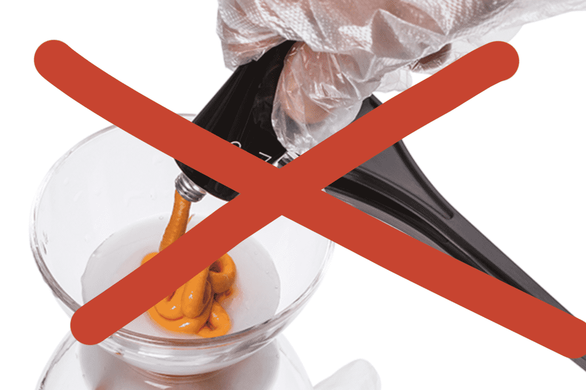 - Выдавите в миску основной краситель и тщательно смешайте его с микстоном. Если у вас в рецепте не участвует микстон, значит размешайте краситель сам с собой.