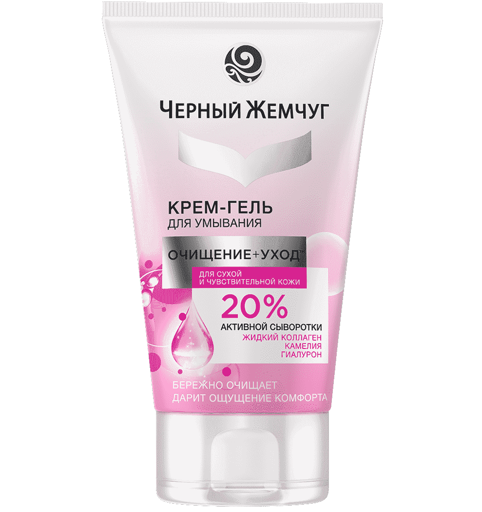 В линейке бренда “Черный Жемчуг” есть множество средств ухода за разными типами кожи. Средство предоставляется в мягкой тубе, из которой удобно выдавливать нужное количество косметики. При контакте с водой крем-гель образует нежную пенку, которая оставляет приятное чувство свежести и чистоты после умывания. Состав глубоко питает и увлажняет кожу, делает ее более гладкой и упругой, а жидкий коллаген и гиалуроновая кислота в составе дополнительно разглаживают морщины и выравнивают тон лица.