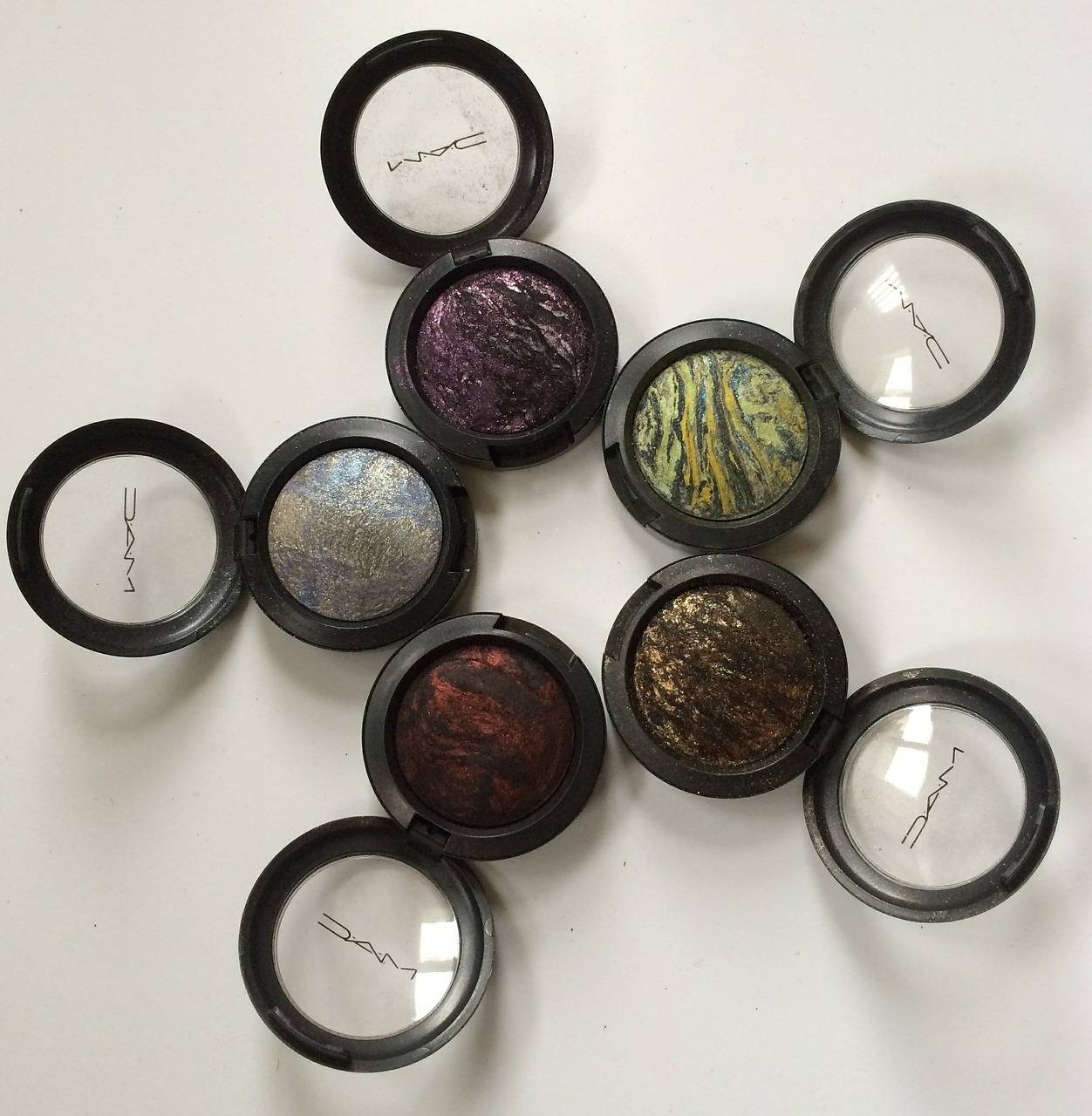 Запеченные — подтип компактных теней, созданных особым образом. В этом случае рассыпчатые тени сначала смешивают с водой, а затем запекают при температуре не менее 60 градусов в специальной печи. Компактные тени изготавливают схожим образом, но температура несколько ниже.