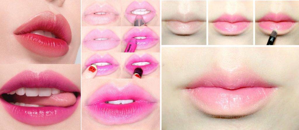 Очень актуально омбре или градиент на губах при помощи блеска и помады