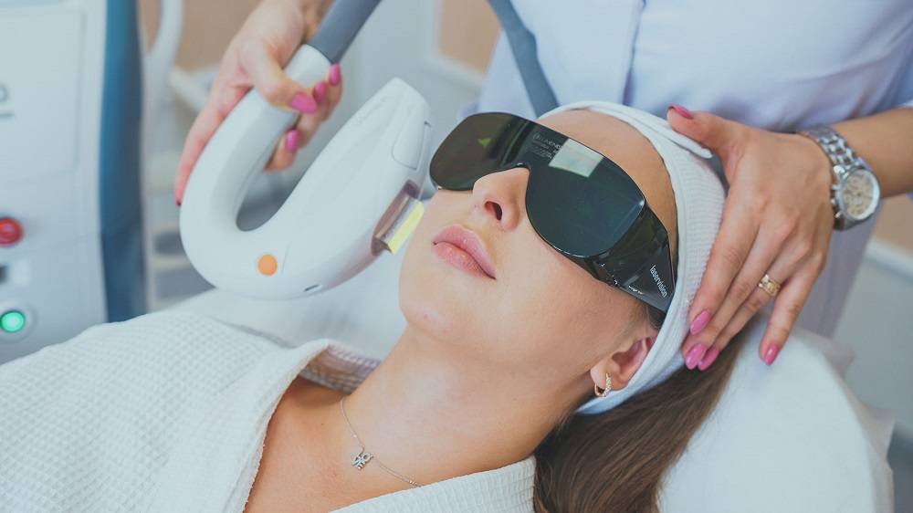 Когда лазером удаляют пигментные пятна на лице, вспышки аппарата опасны для зрения. Поэтому глаза во время процедуры защищаются медицинскими очками.