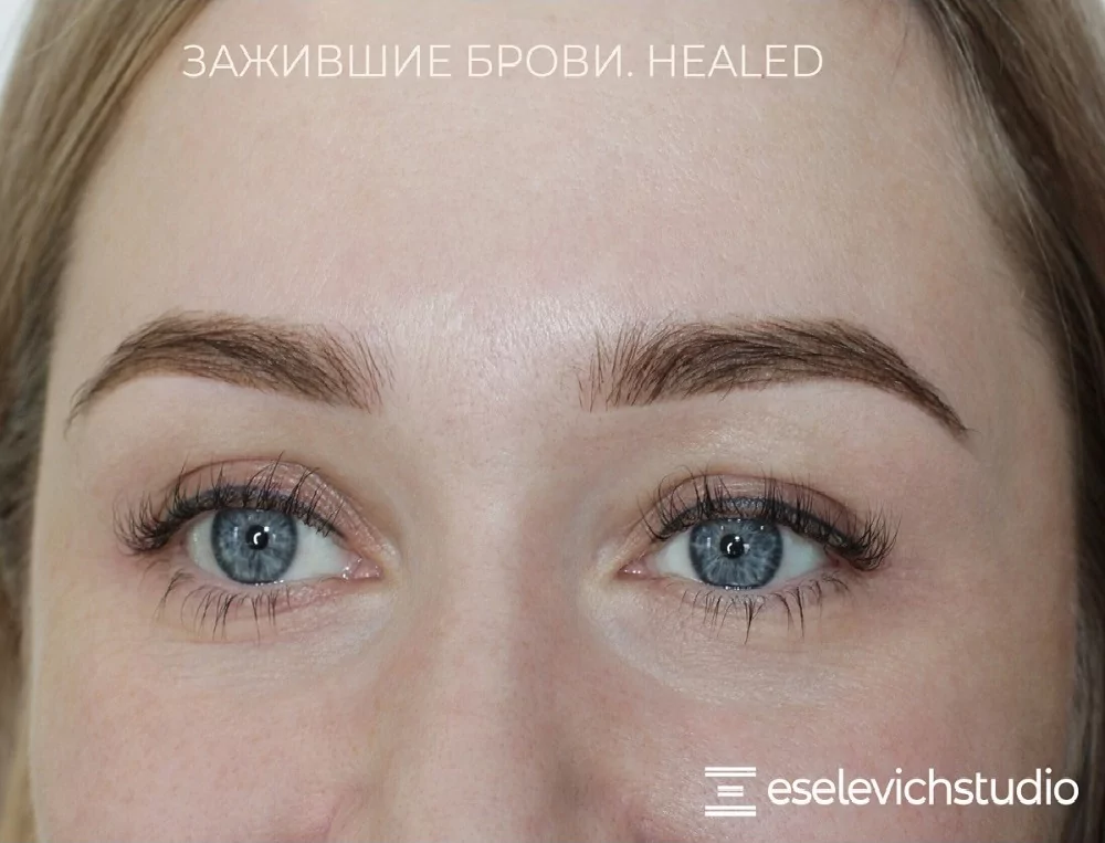 Корки постепенно пропадают, шелушение уходит. Начинает проявляться пигмент. Сначала он бледный, но спустя месяц после процедуры становится насыщеннее, и брови обретают ту форму, которая и была задумана.