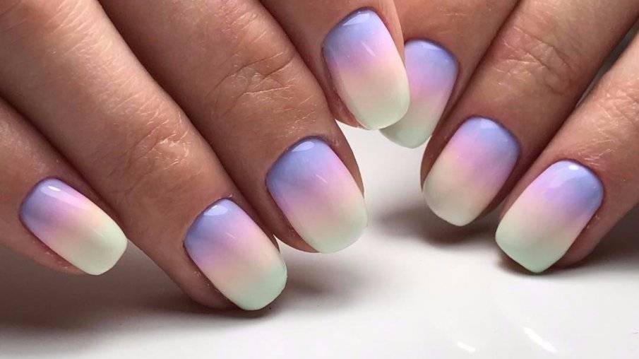 В домашних условиях сложно сделать трехмерный дизайн или художественную роспись. Наибольшие проблемы возникнут при обработке «рабочей» руки. К тому же понадобится приобрести слишком много различных гелей, кистей и элементов декора. Дешевле сделать маникюр в салоне. А вот несложный градиентный узор под силу даже начинающей мастерице. Для этого потребуются два цветных биогеля гармонирующих оттенков и чистая кисть для растушевки.
